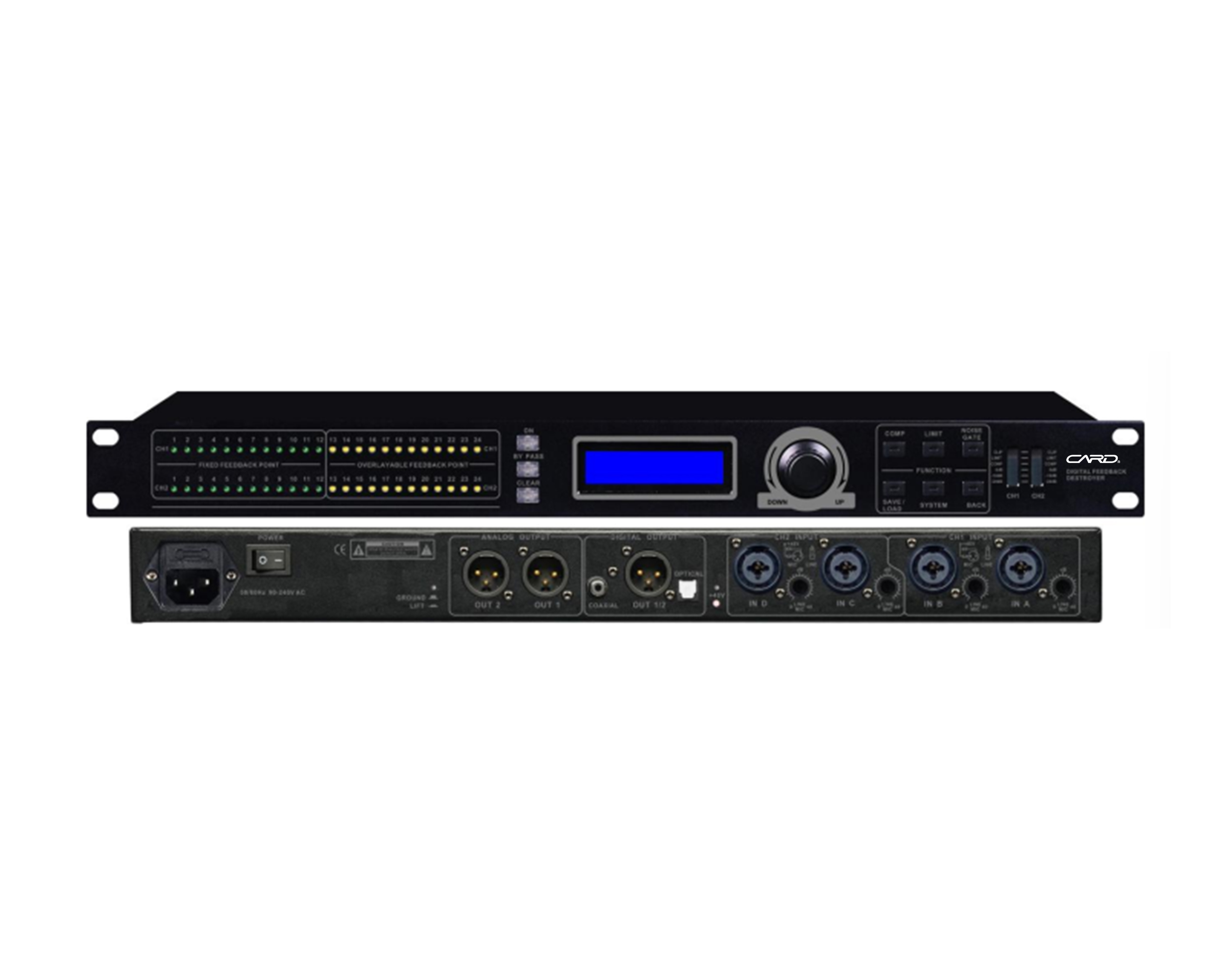 输出通道及插座: 2路XLR公卡侬座,1路数字卡侬,光纤,同轴输出